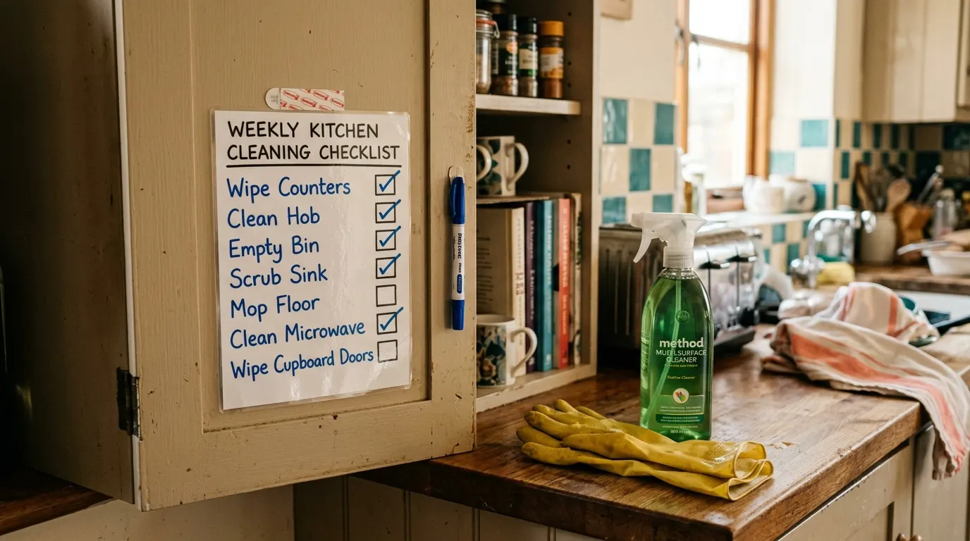 The cleaner lasted two turnovers before she asked me if I had something she could actually follow. I did not. So we built one together over the next month, tested it across three properties, and I have been using versions of it ever since. It is one sheet of A4 per property, landscape orientation, laminated and stuck to the inside of the cleaning cupboard door with command strips.